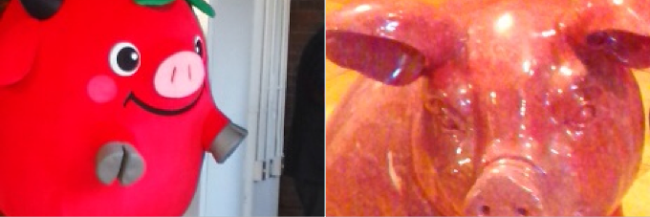 イベントに来ていたゆるキャラと自然食のお店入り口にいた子