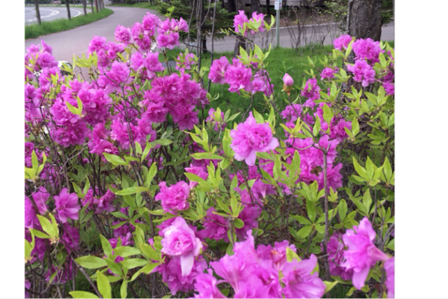 マンション玄関周りのツツジ、ライラック、桜